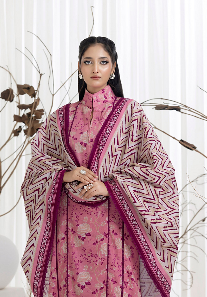 Elevate your winter wardrobe with the SALINA – Winter 3PC Khaddar Printed Suit (Unstitched). Crafted from premium-quality khaddar, this 3-piece ensemble is designed for both comfort and elegance during the colder season. The all-over printed design adds a timeless charm, making it a versatile choice for casual and semi-formal wear.