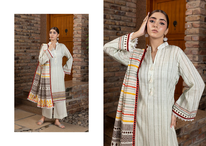 Elevate your winter wardrobe with the SALINA – Winter 3PC Khaddar Printed Shirt and Dupatta -  Plain Khaddar Trouser (Unstitched). Crafted from premium-quality khaddar, this 3-piece ensemble is designed for both comfort and elegance during the colder season. The all-over printed design adds a timeless charm, making it a versatile choice for casual and semi-formal wear.