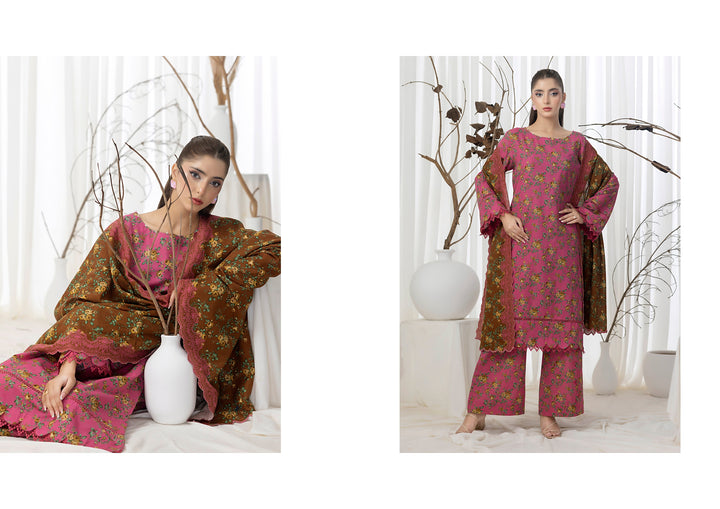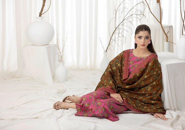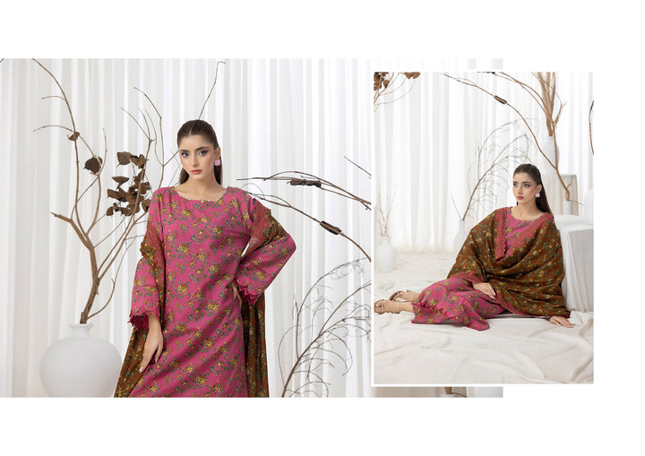 Elevate your winter wardrobe with the SALINA – Winter 3PC Khaddar Printed Suit (Unstitched). Crafted from premium-quality khaddar, this 3-piece ensemble is designed for both comfort and elegance during the colder season. The all-over printed design adds a timeless charm, making it a versatile choice for casual and semi-formal wear.